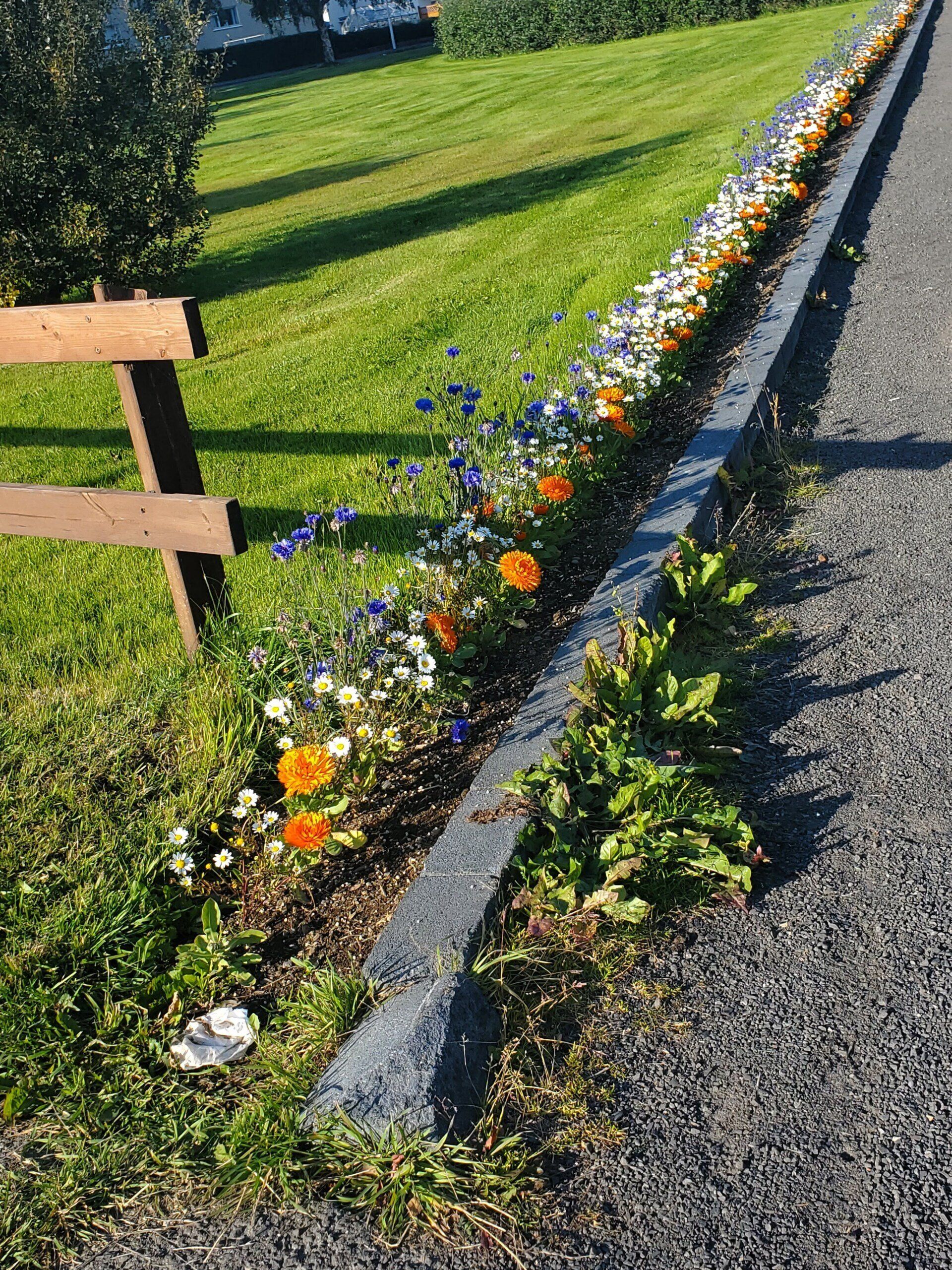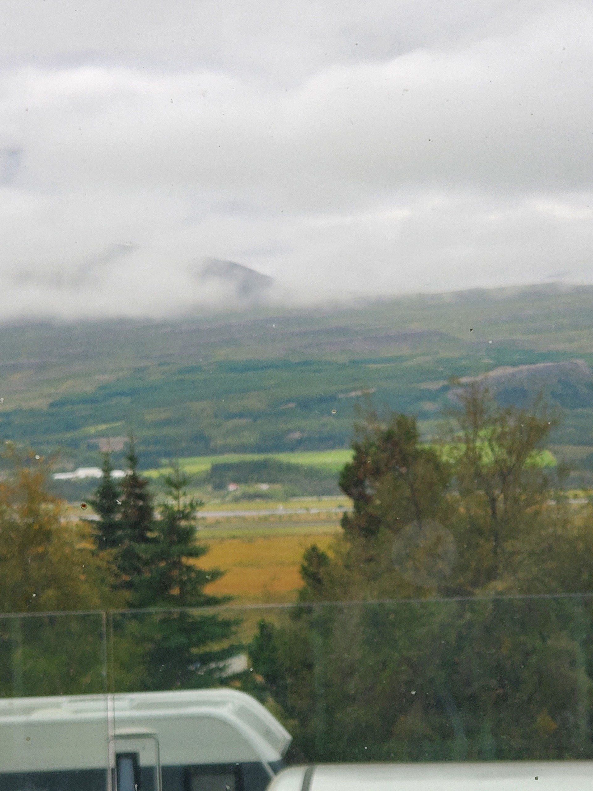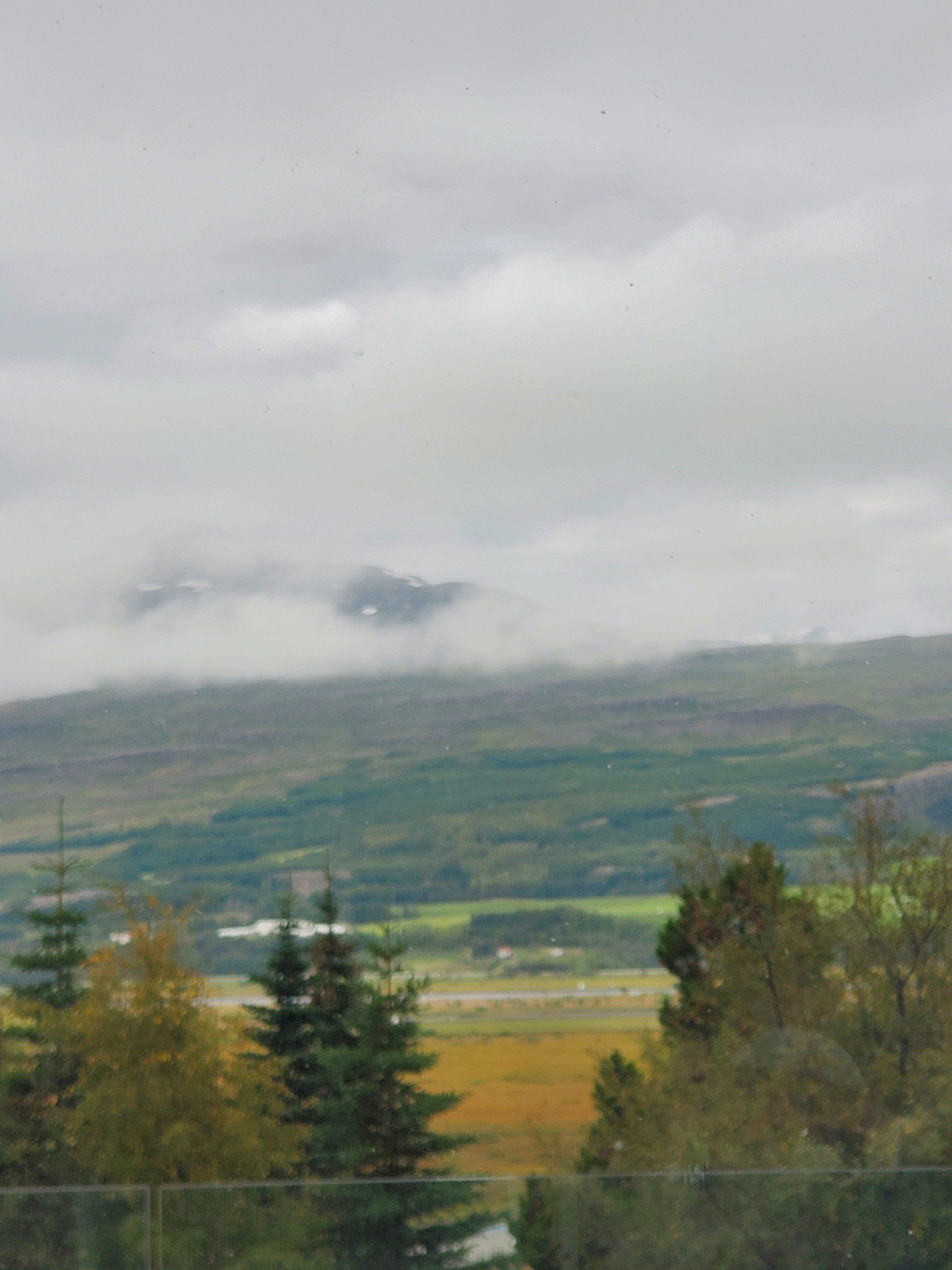 Up and breakfast at our apartment. Then off to the Yoga studio for a session. Here is the view we have in the yoga studio. Every day it was different because of the clouds on the mountains. Lunch was in town. Today was a free day so we were able to spend time in Akureyri and do some retail therapy. Pretty flowers. We were on our own for supper too.