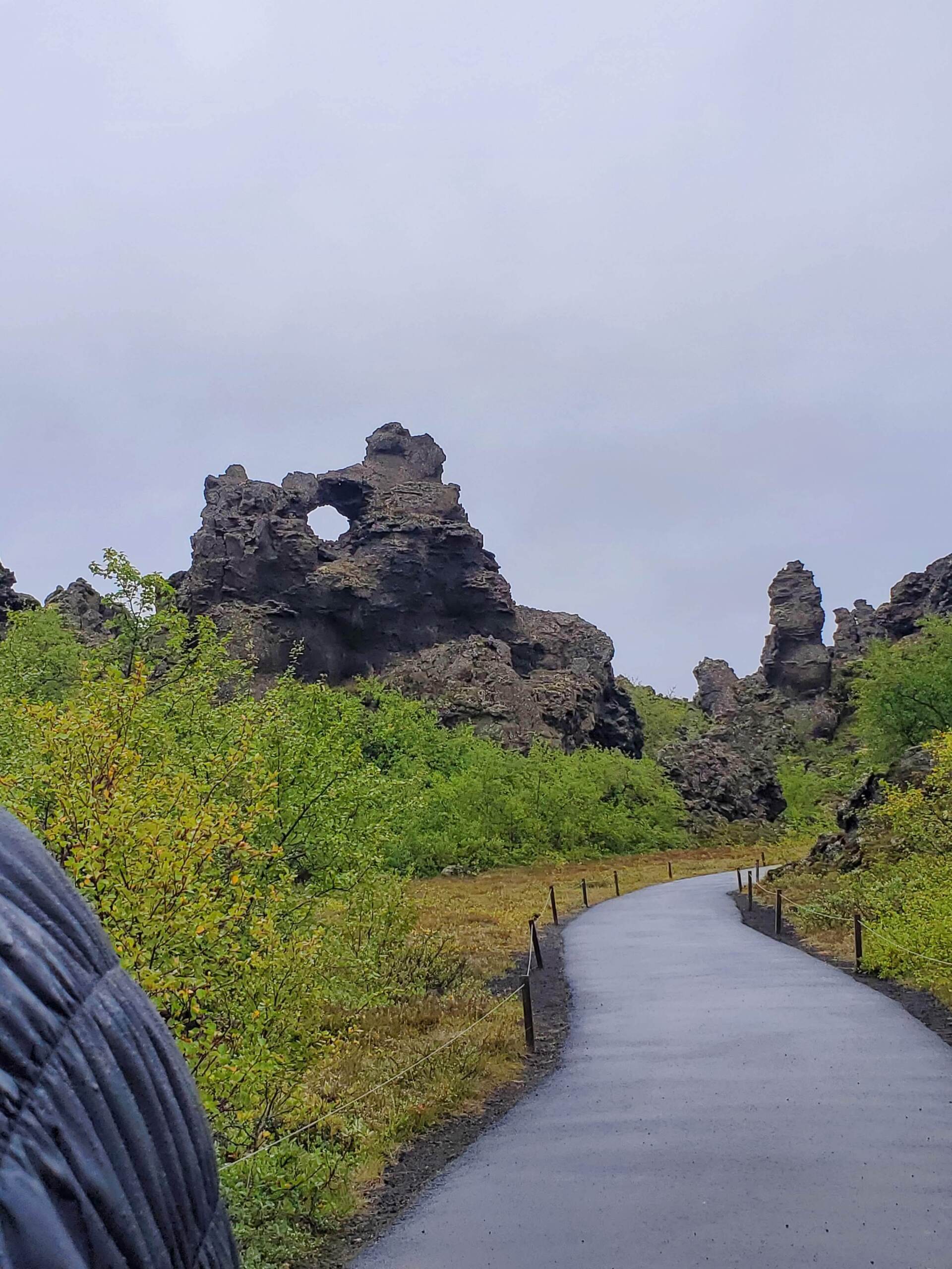 Unfortunately, the weather was not the best. Myvatn is a natural lagoon. So lots of minerals in the water. We say steam rising from the ground where the fissures are. There were amazing volcanic rock formations and we saw where the Eurasian and North American tectonic plates meet. Lots of talk about the elves here.
